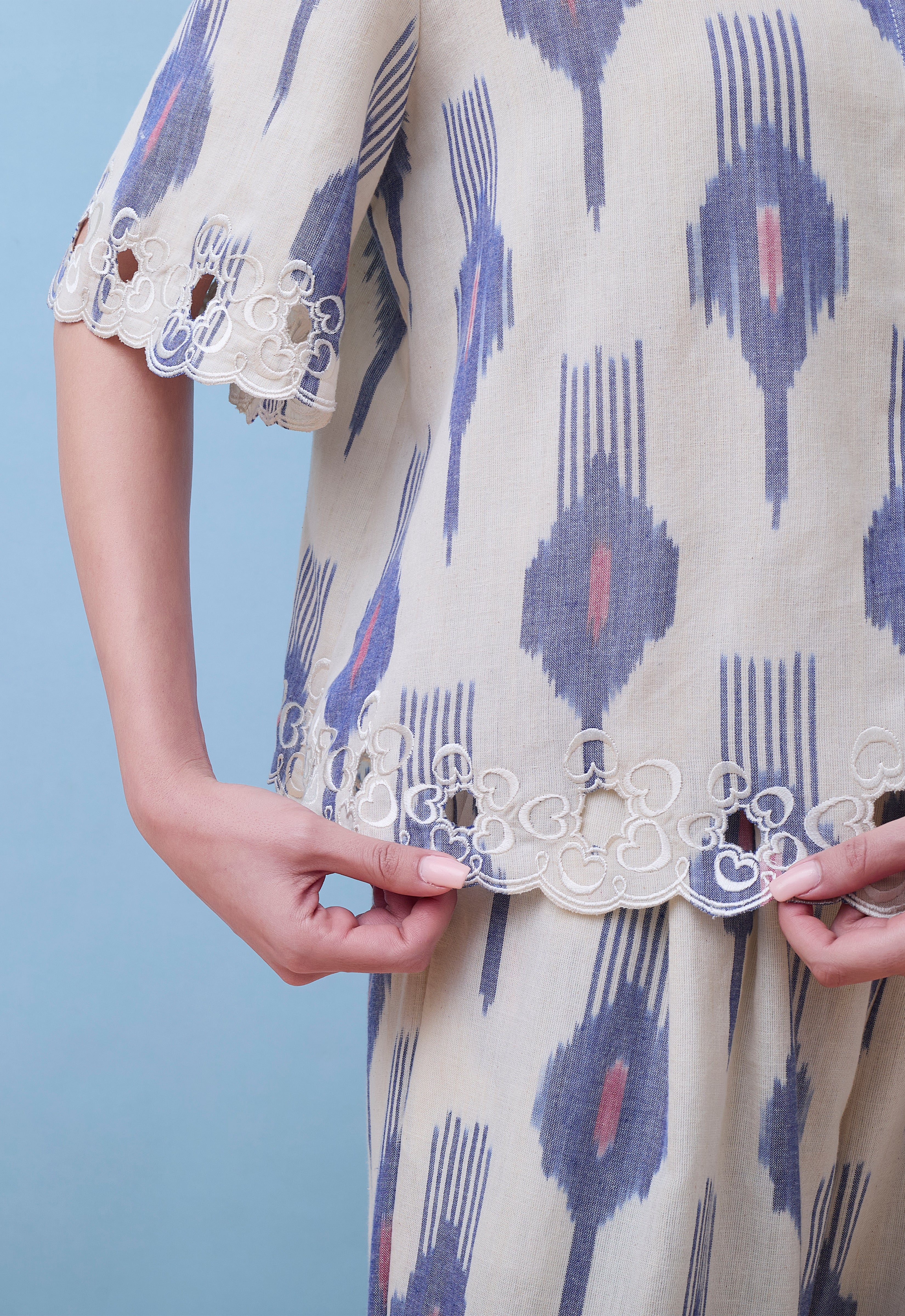 Leher Co-Ord Set Ikat and Cutwork