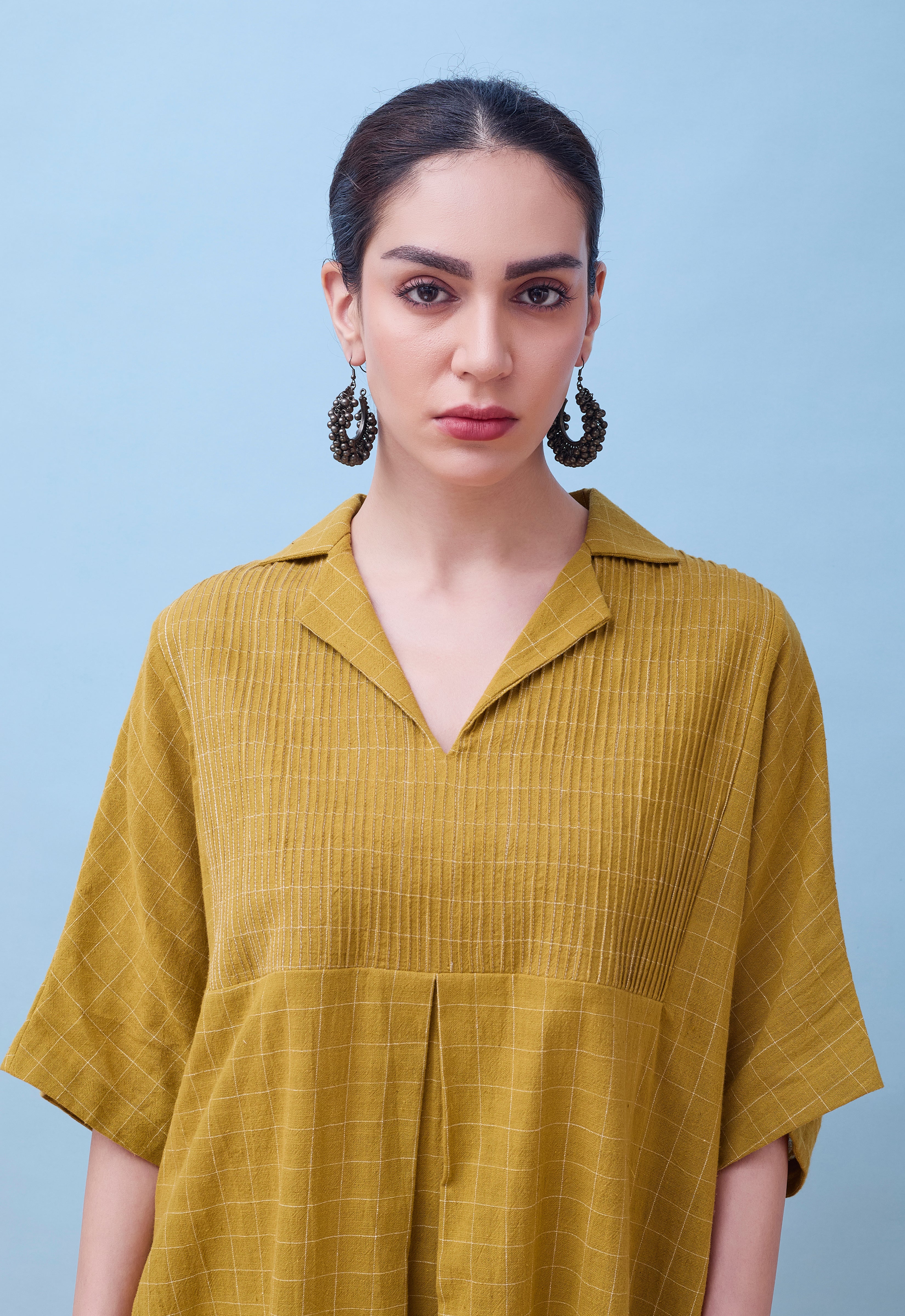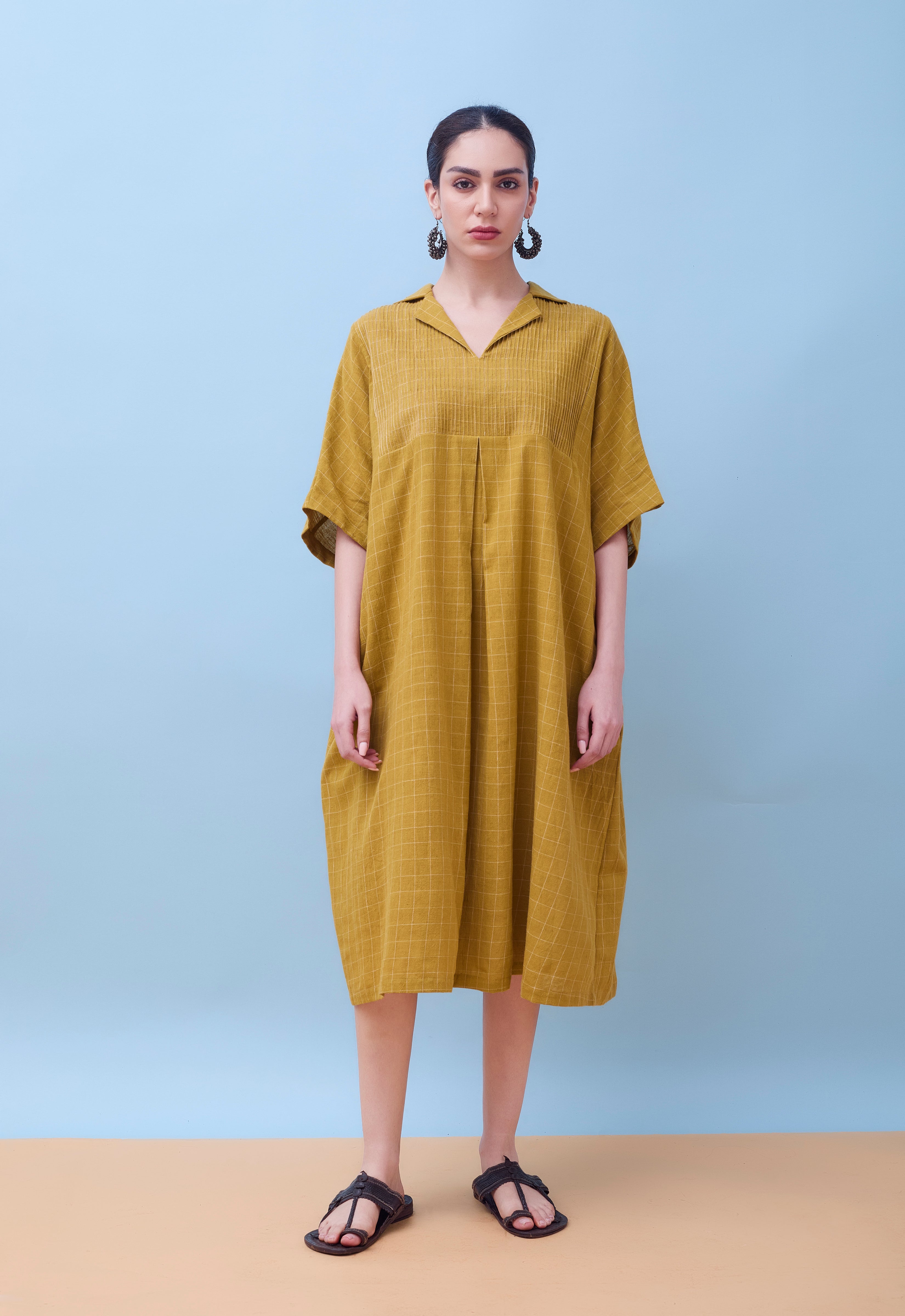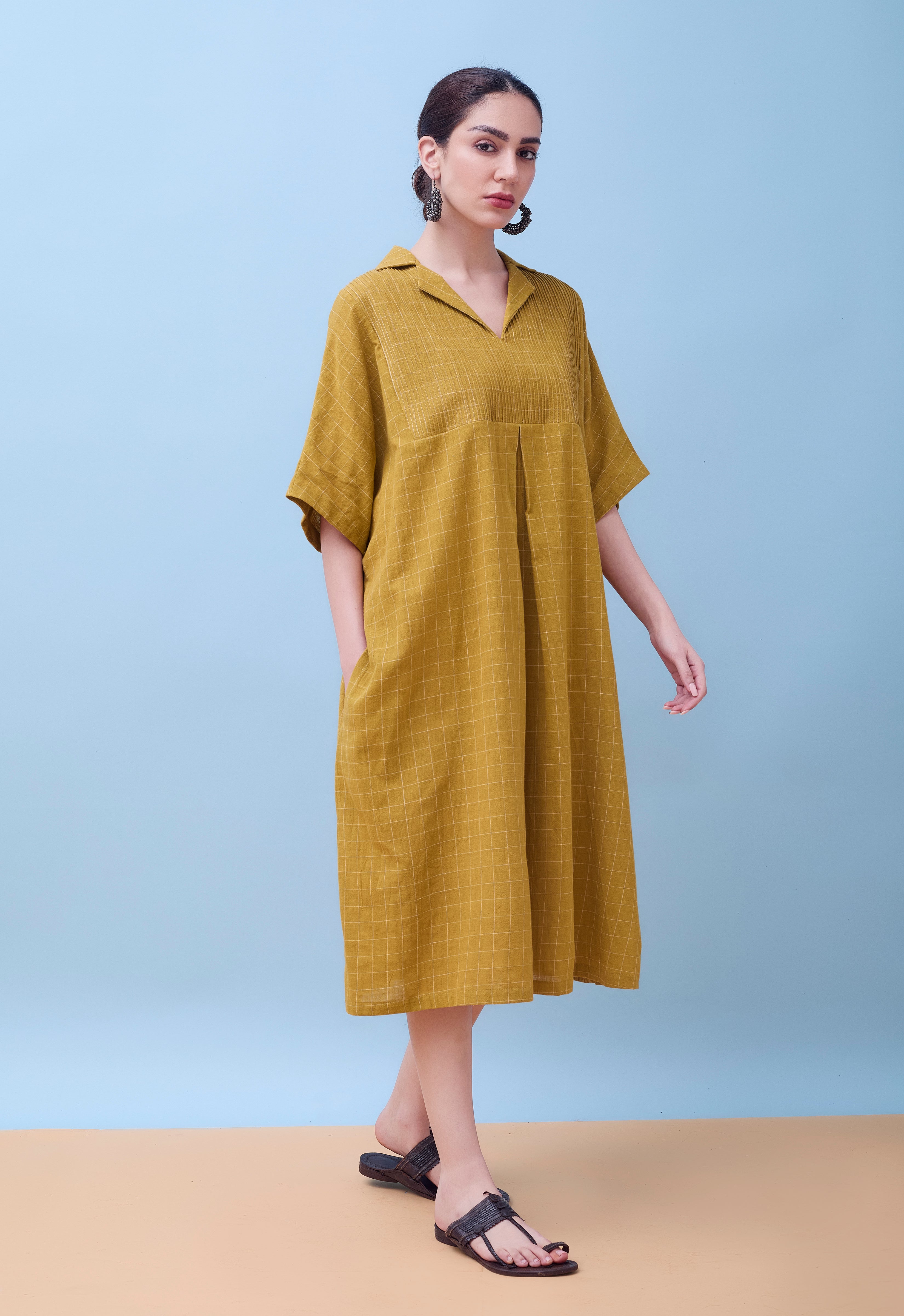 Dhara Handloom Dress features a relaxed fit that moves with you throughout the day, paired with practical side pockets for everyday convenience. Delicate pintucks on the yoke add subtle texture and visual interest, creating a timeless silhouette that transcends seasonal trends. Crafted with comfort in mind, this dress effortlessly transitions from casual outings to relaxed gatherings, making it a versatile staple for your wardrobe.