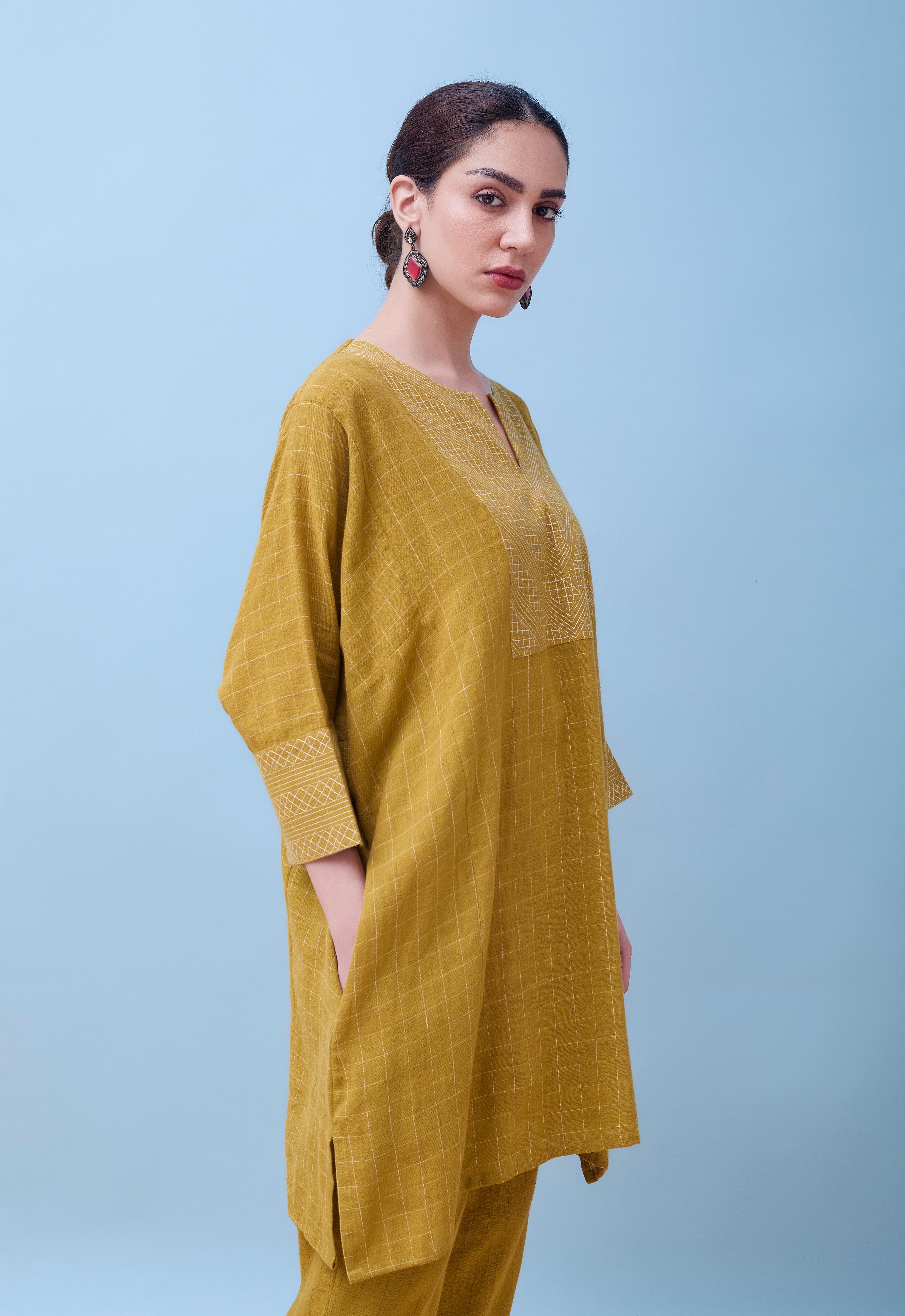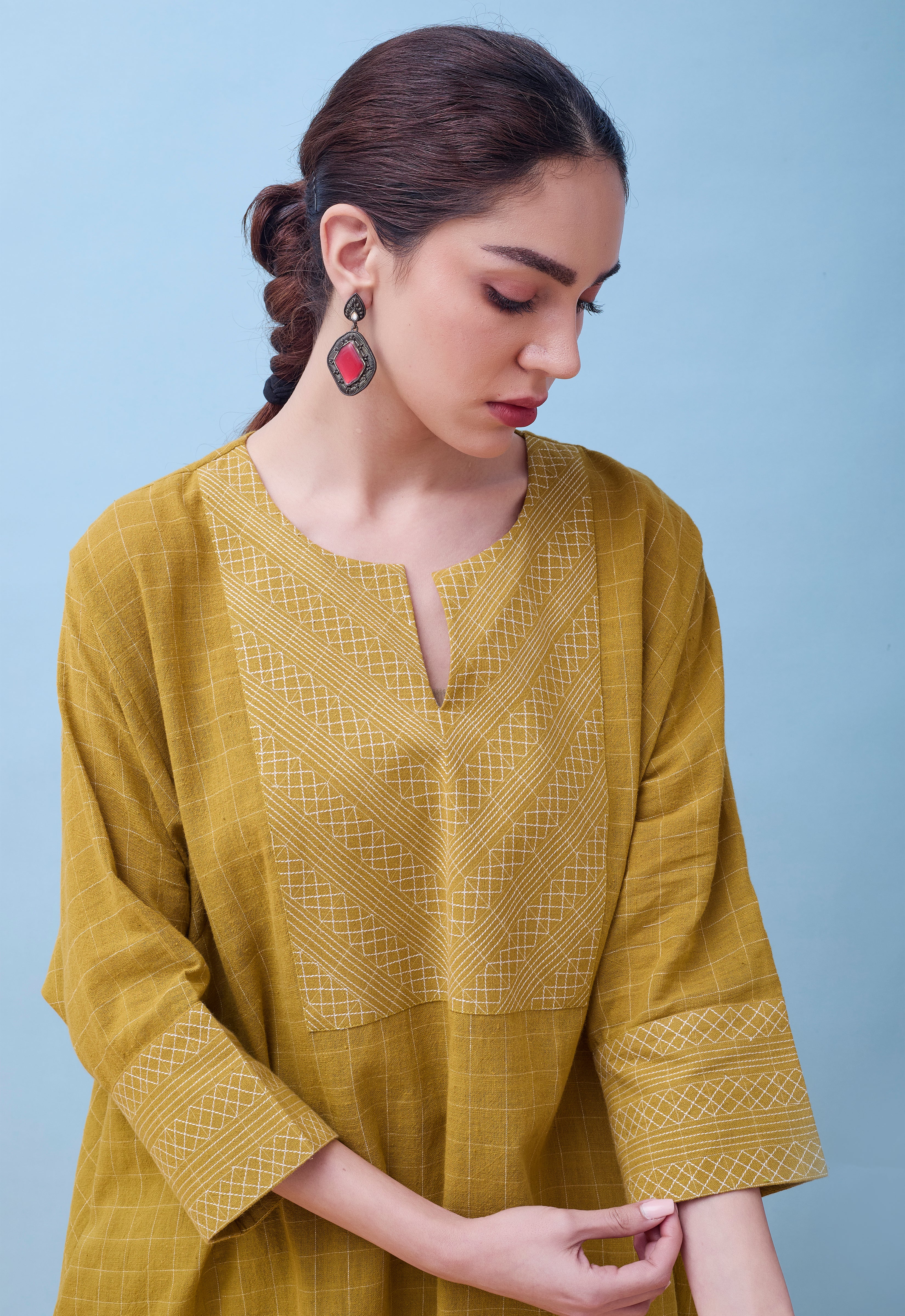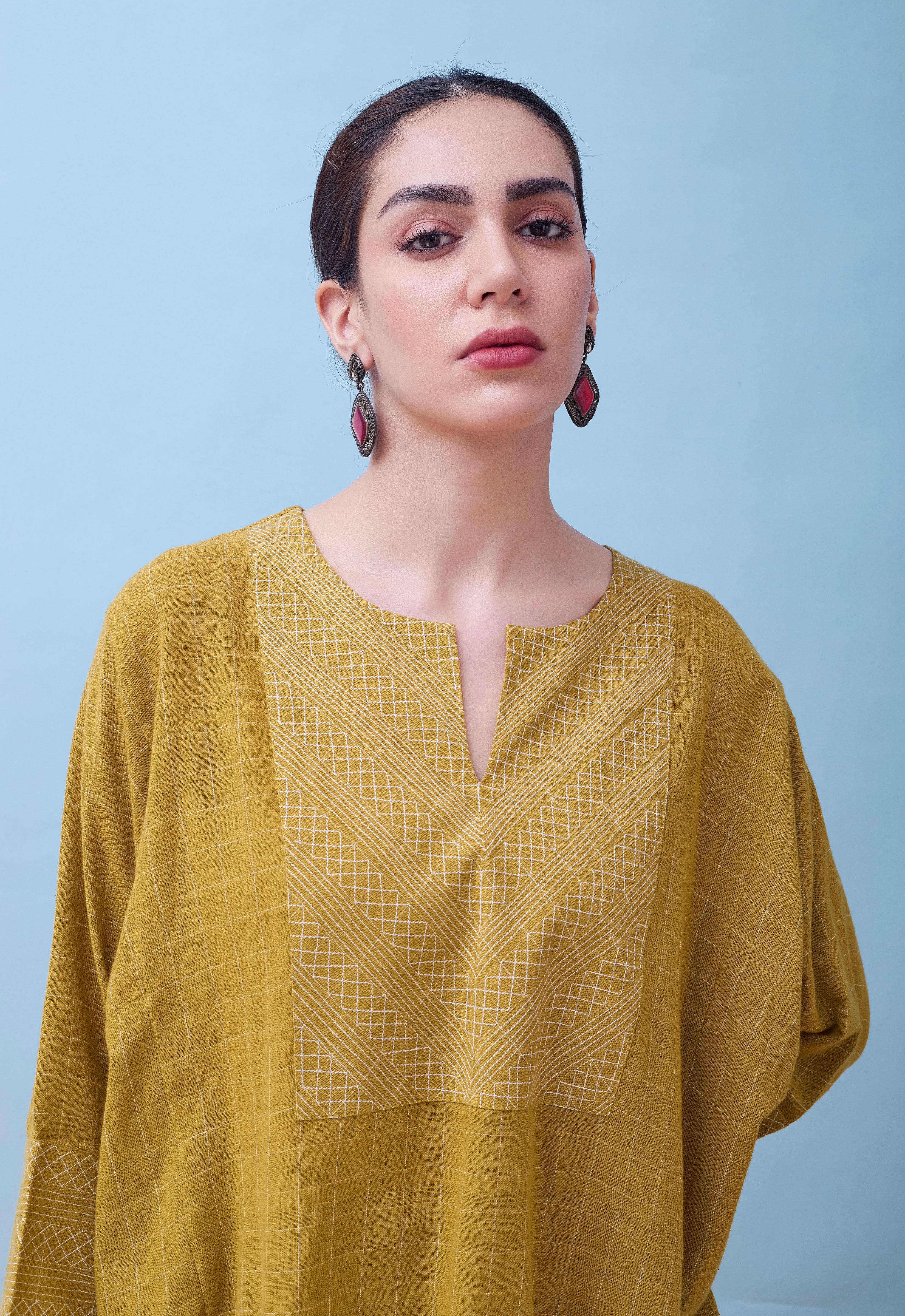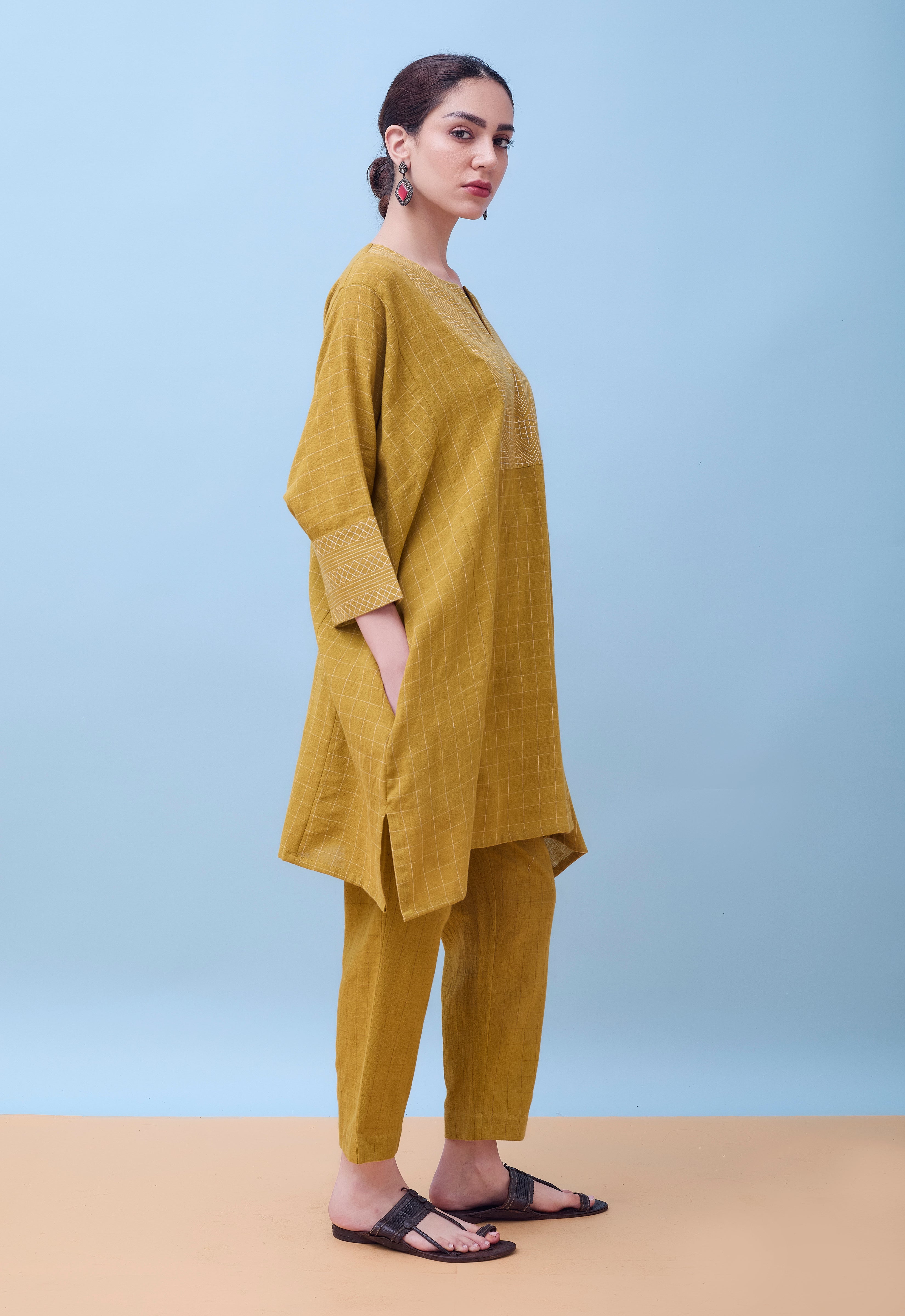 The Sandhya Handloom Kurta Set brings together traditional craftsmanship and contemporary comfort. Featuring delicate thread work detailing on the yoke, this versatile piece transitions seamlessly across seasons. Crafted for all-day wear, it combines the softness of handloom fabric with a chic silhouette that works for both casual gatherings and relaxed celebrations. A timeless addition to any wardrobe that celebrates artisanal quality.