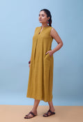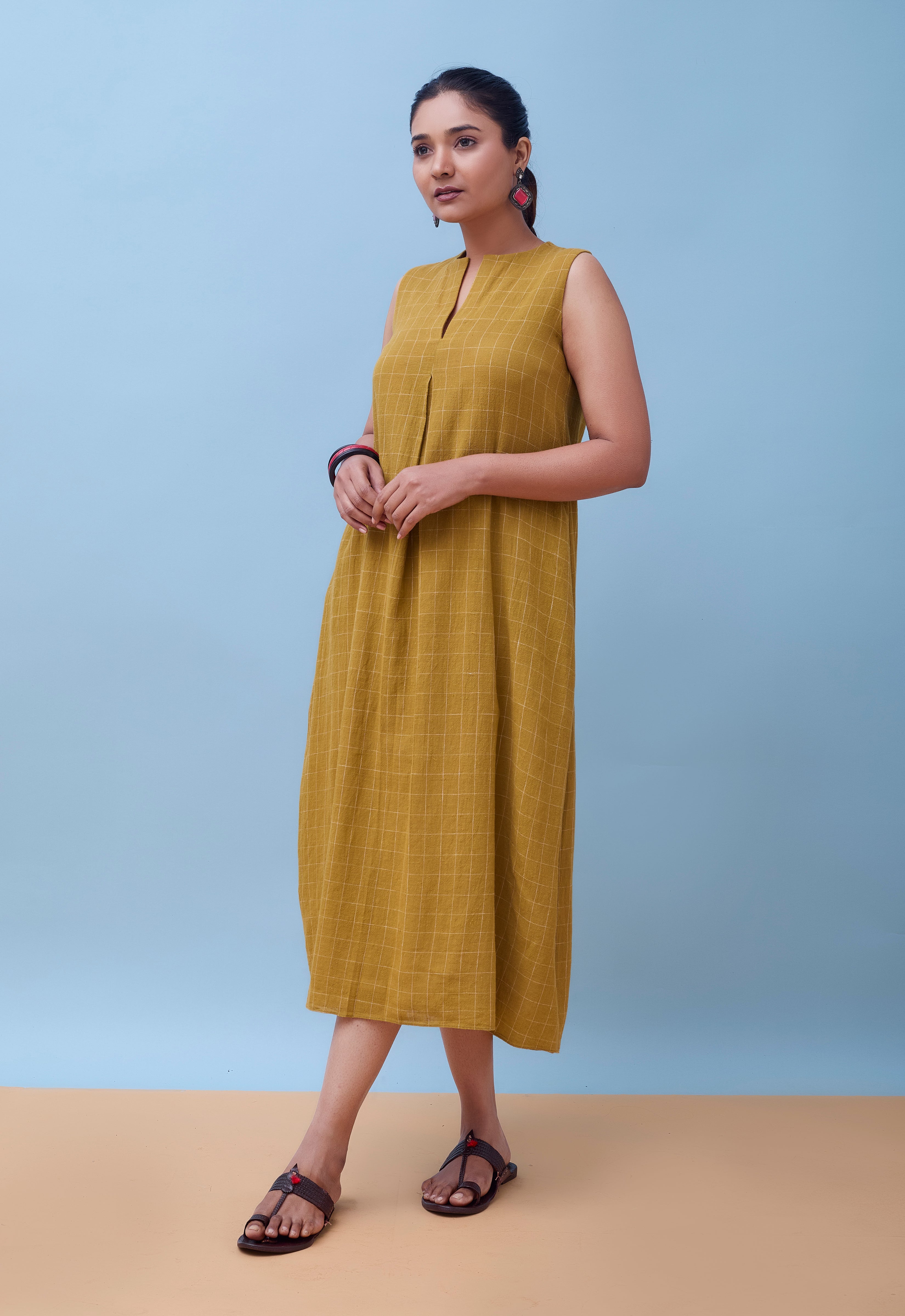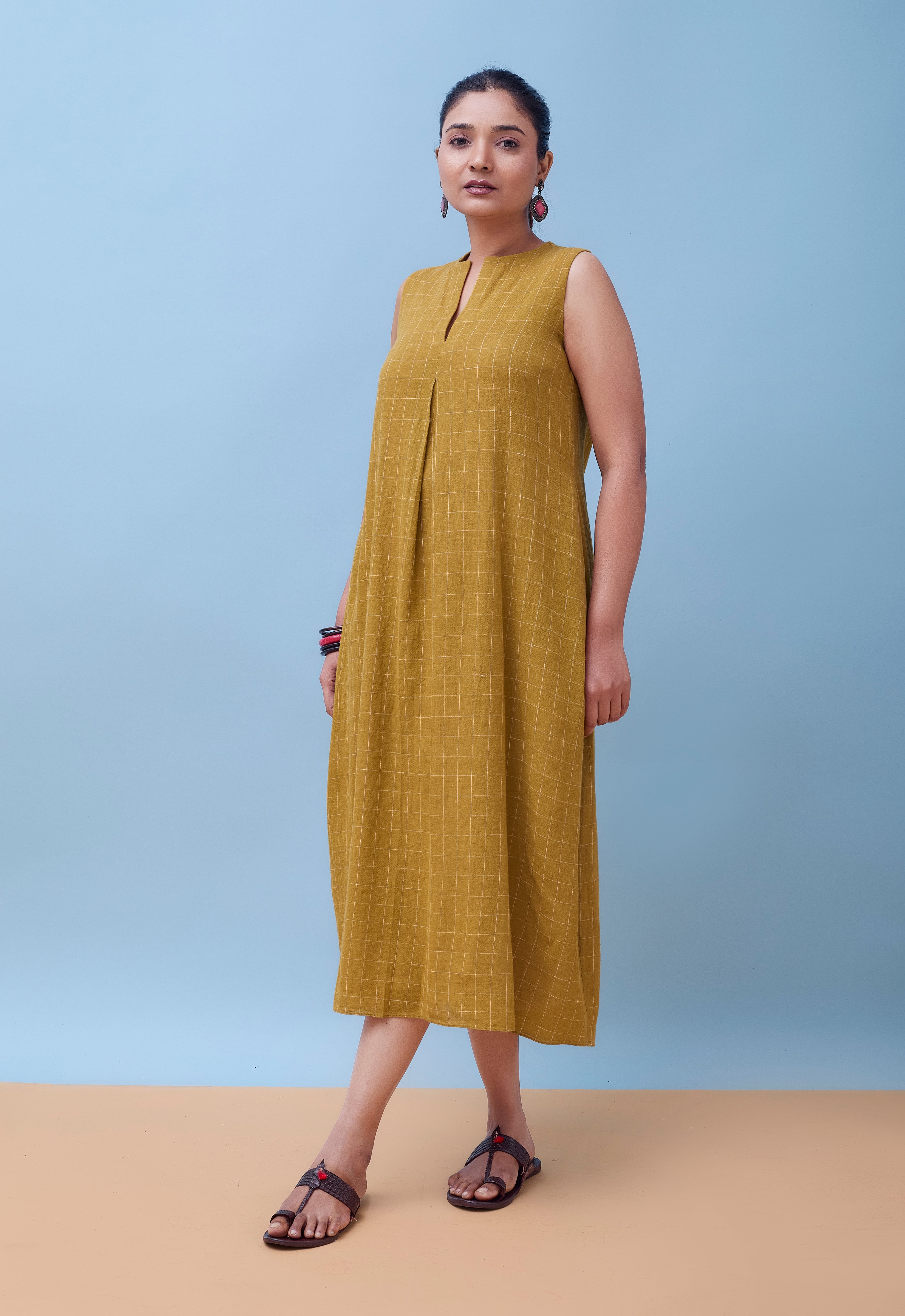 Crafted from soft handloom fabric with a charming check pattern, the Romi Midi Dress is your ideal companion for warm weather adventures. This sleeveless design features practical side pockets, making it effortlessly functional for on-the-go styling. Light, breathable, and versatile.