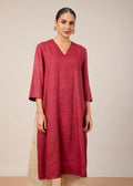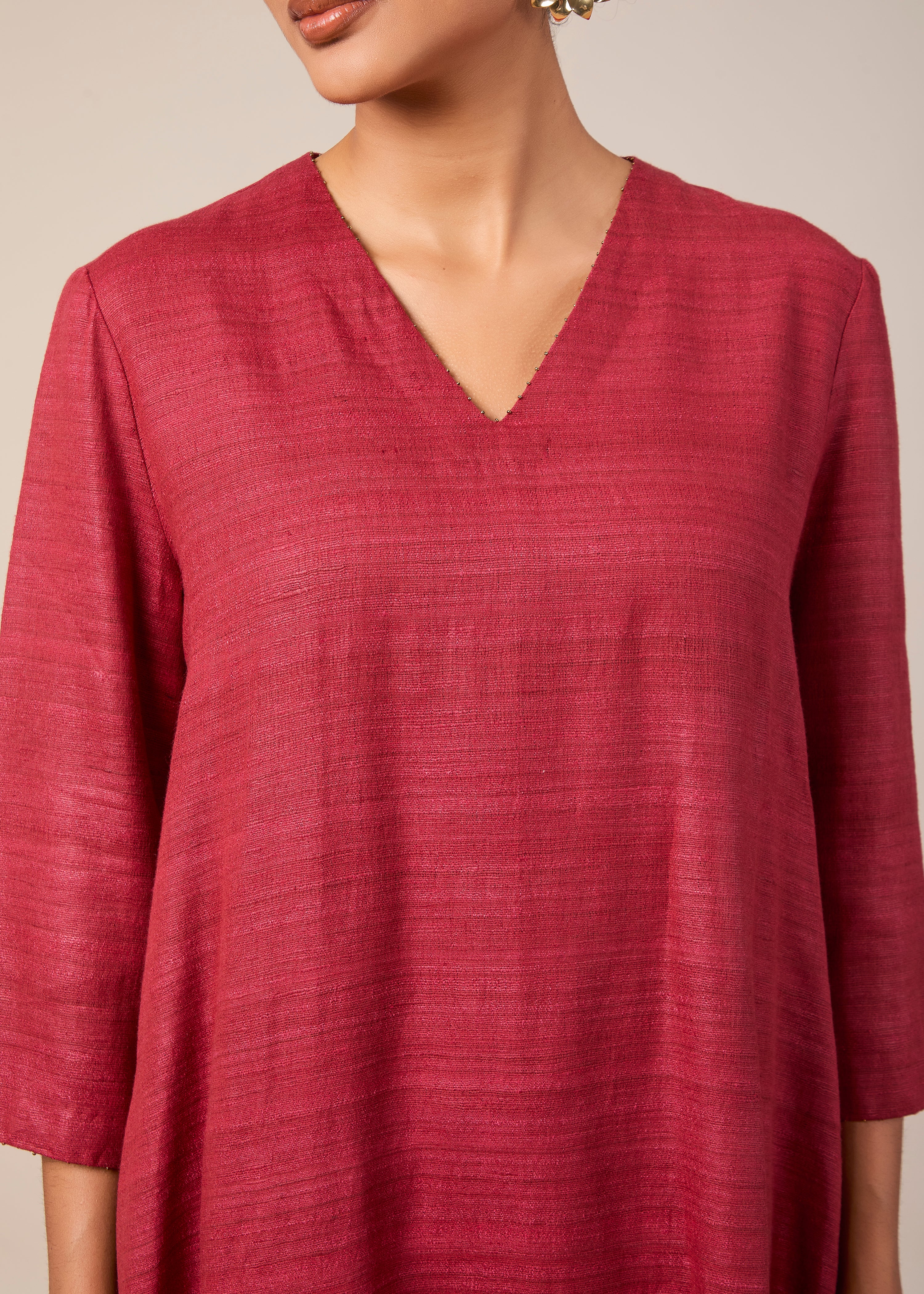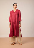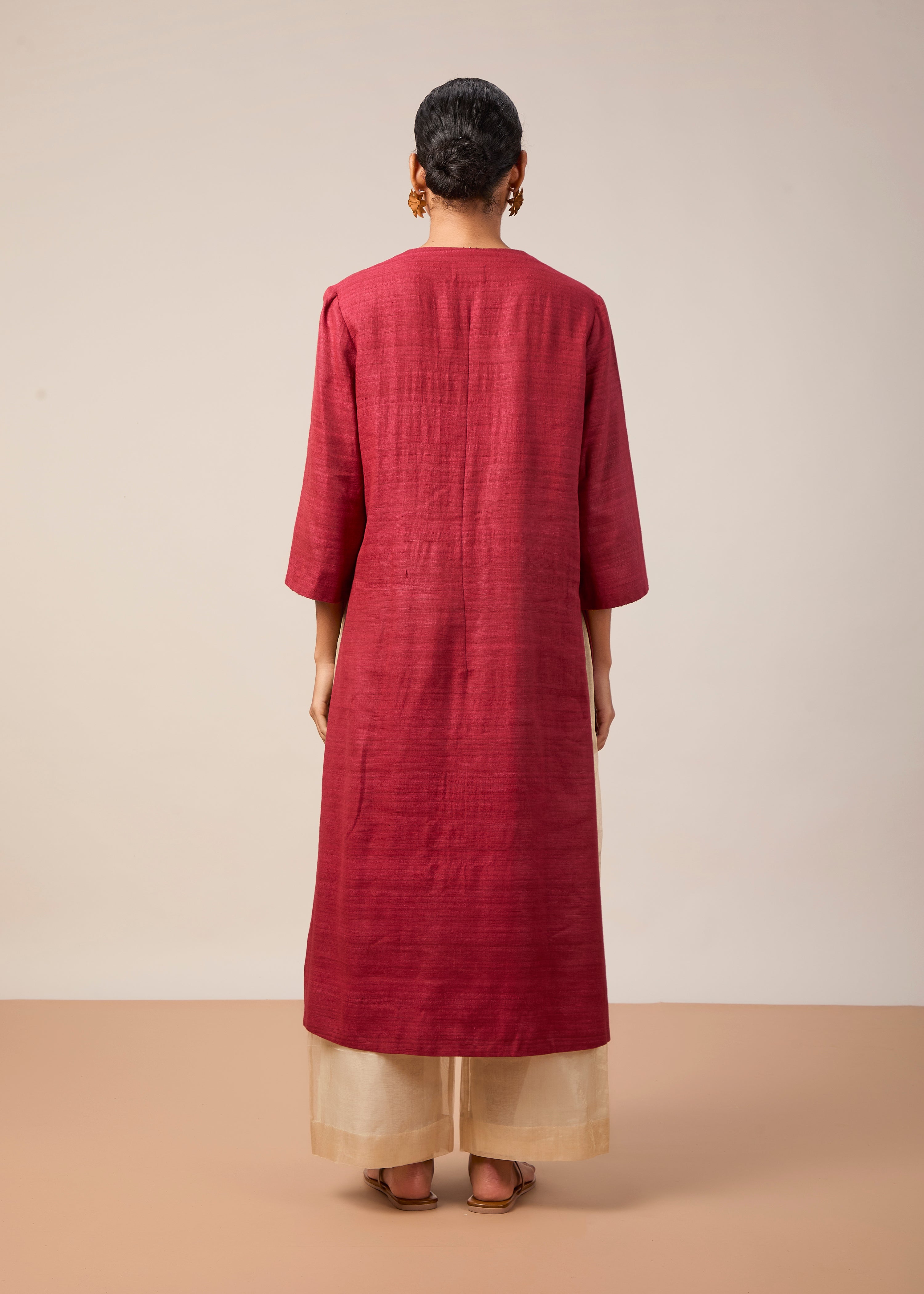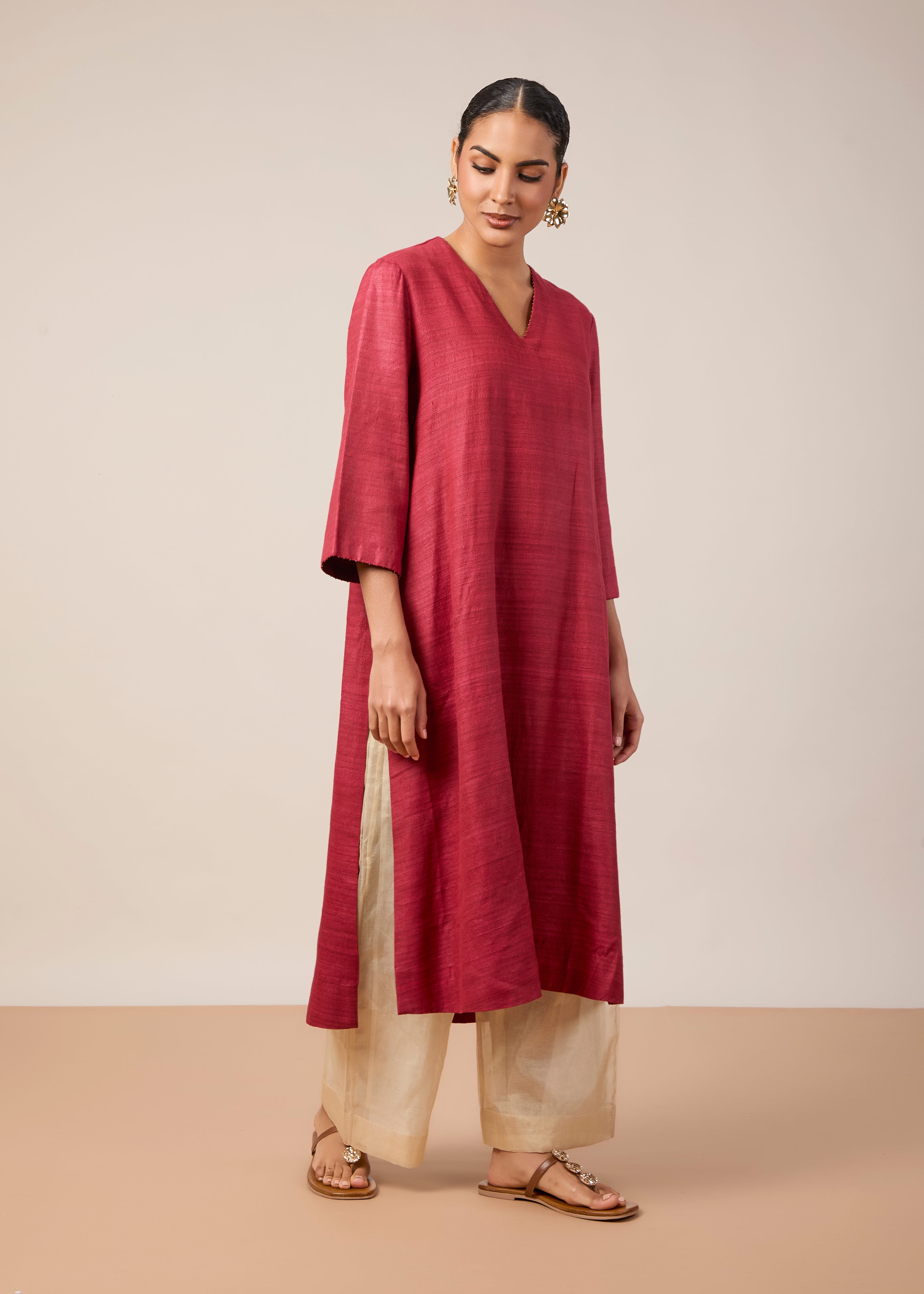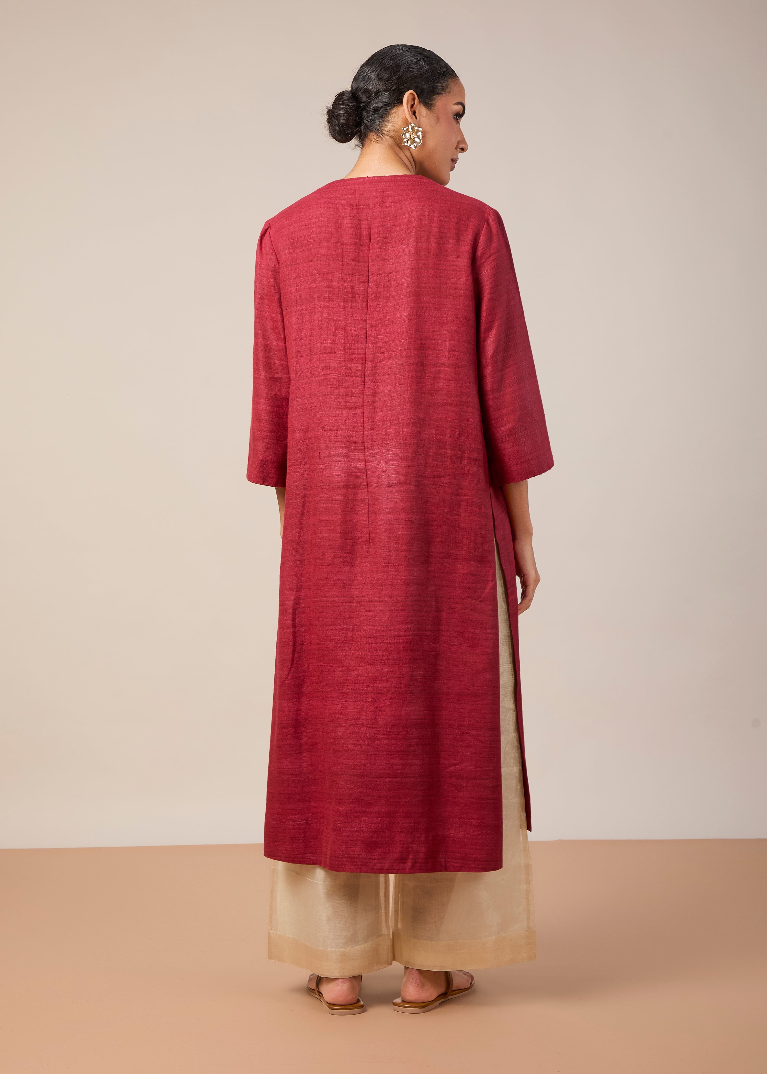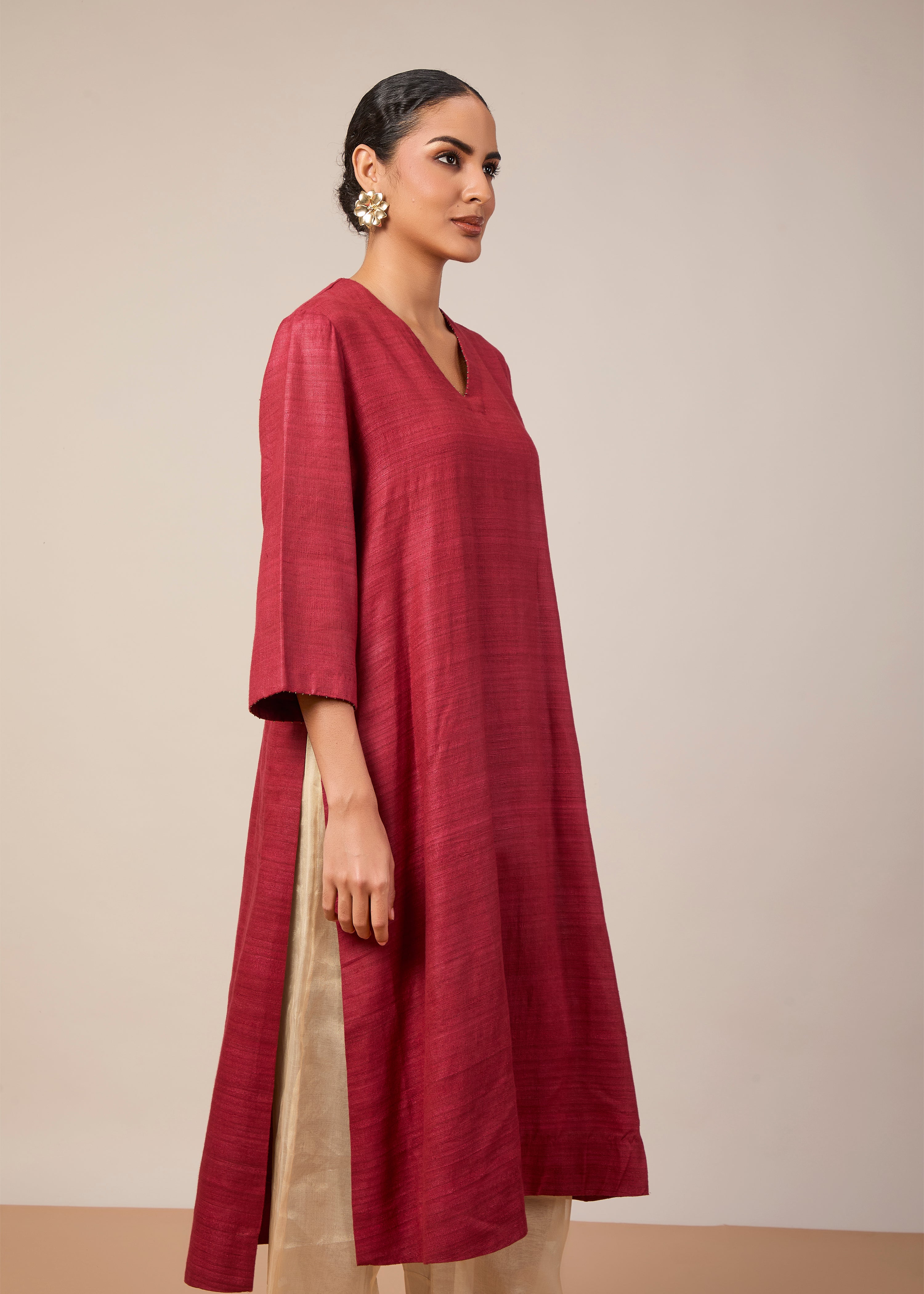 Kurta with high side slits made in bamboo tusser silk paired with gold organza pants with lining on the top and bottom.